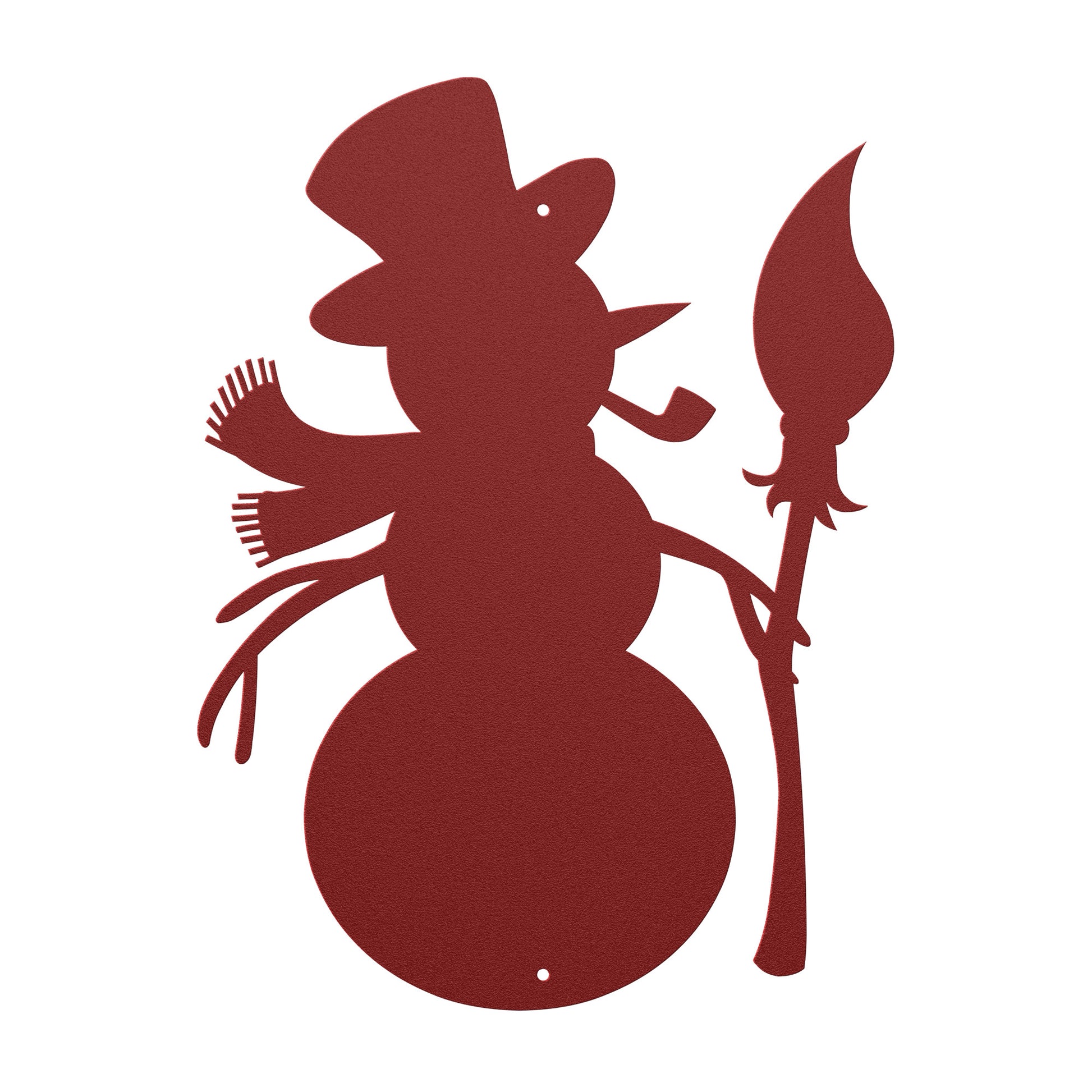 The Detailed Snowman metal sign features a cute snowman with a hat, scarf, and broom for accessories. The laser-cut steel sign is available in a variety of colors — each perfect for the holiday decor you desire. Each piece has a baked on powder coating to offer a durable finish that can be used indoors or outdoors. Use it to add a unique piece to your holiday collection that will last for years to come.