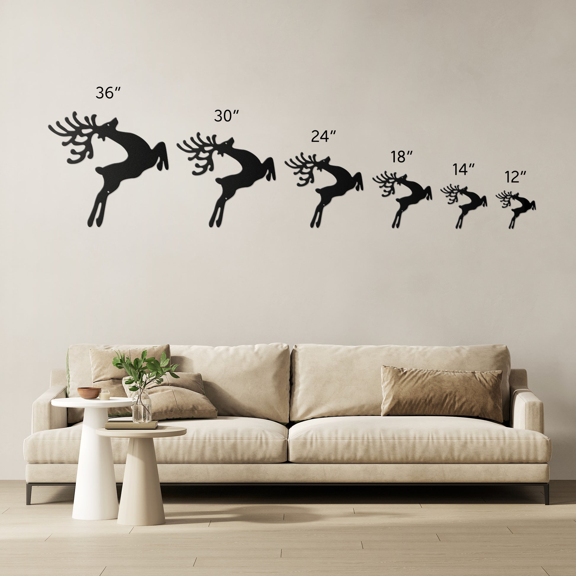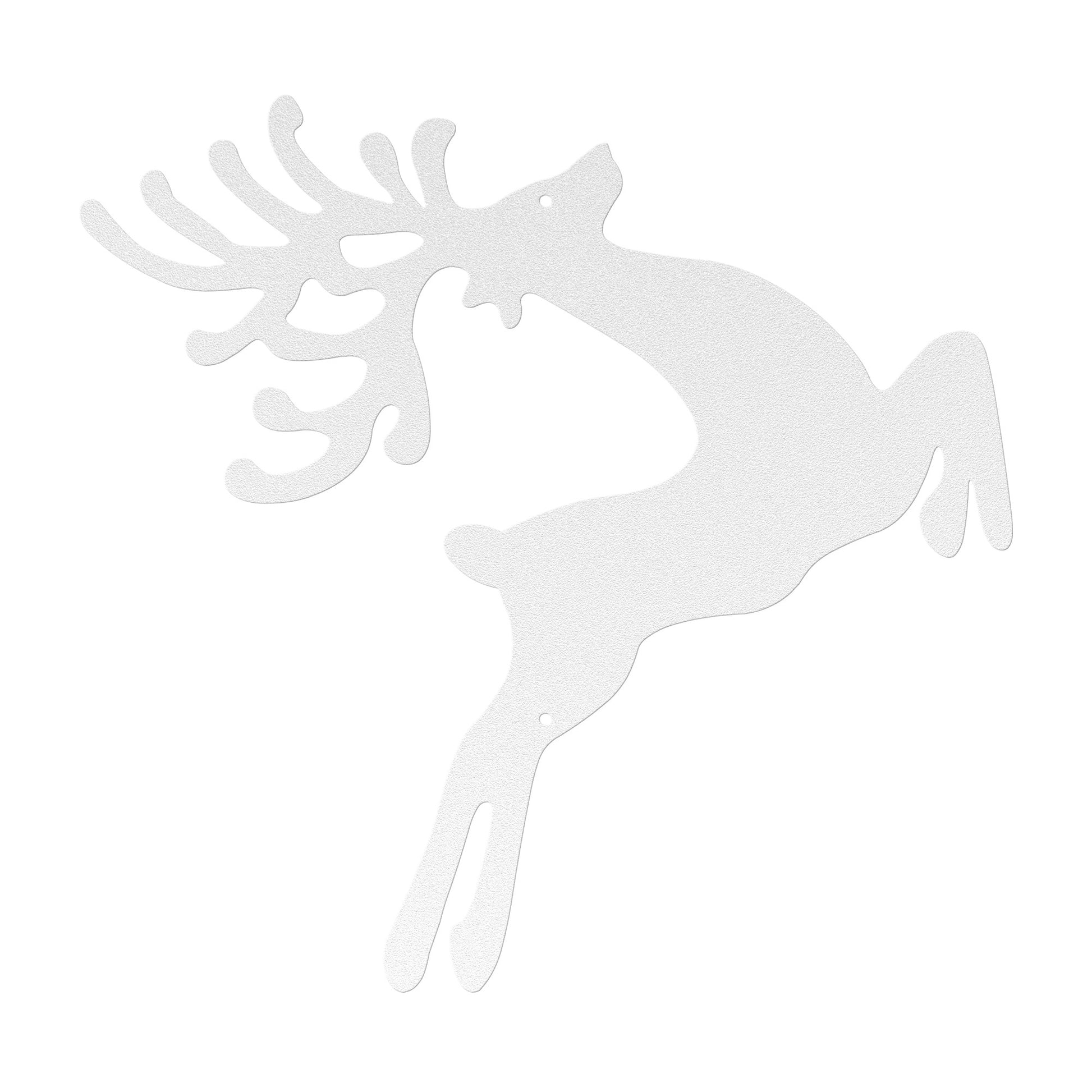 The Prancing Reindeer Christmas metal sign features a dancing reindeer. The laser-cut steel sign is available in a variety of colors — each perfect for the holiday decor you desire. Each piece has a baked on powder coating to offer a durable finish that can be used indoors or outdoors. Use it to add a unique piece to your holiday collection that will last for years to come.